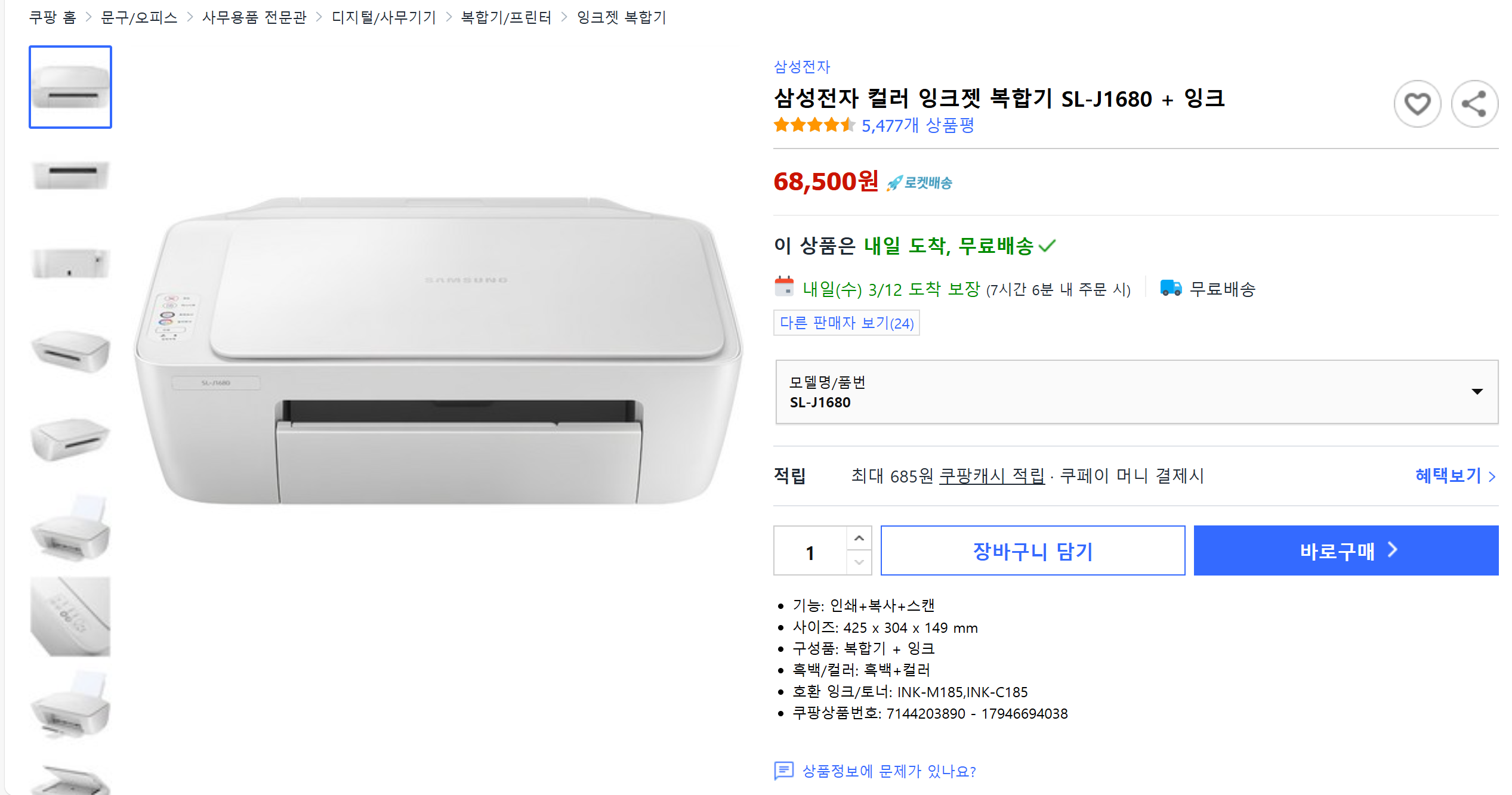 현재 별점 4.7점, 리뷰 5477개를 가진 삼성전자 컬러 잉크젯 복합기 SL-J1680 + 잉크! 지금 쿠팡에서 더 저렴하고 다양한 잉크젯 복합기 제품들을 확인해보세요.